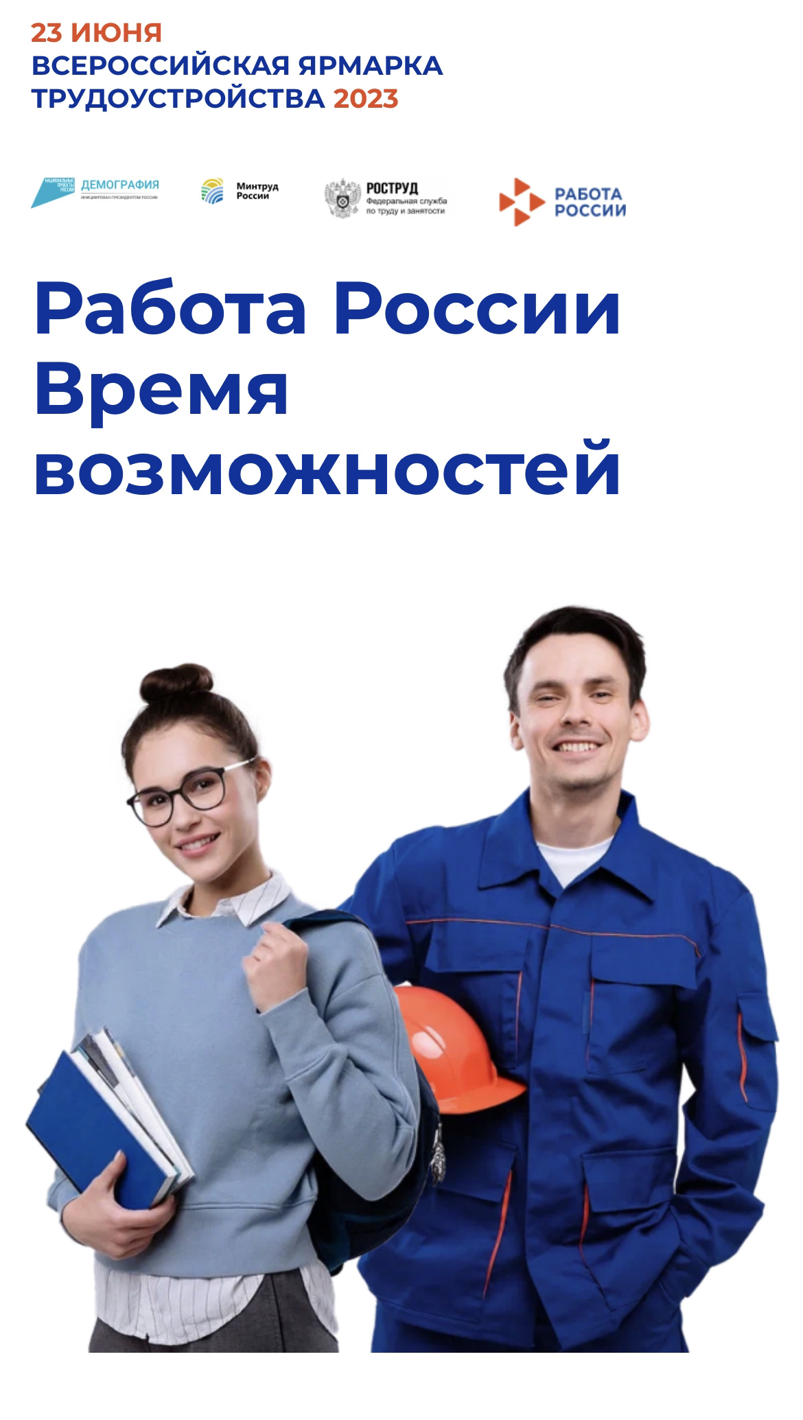 14-15 апреля пройдет региональный этап Всероссийской ярмарки трудоустройства «Работа России. Время возможностей». Программа мероприятия опубликована на отдельной странице портала «Работа России»: https://2023.trudvsem.ru.