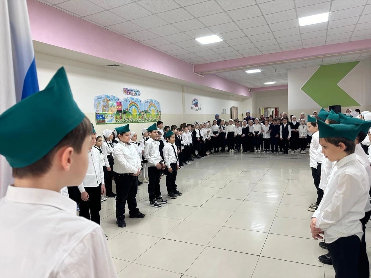 Учебная неделя в МБОУ "СОШ-40"г.Грозного началась с исполнения Государственных гимнов Российской Федерации и Чеченской Республики