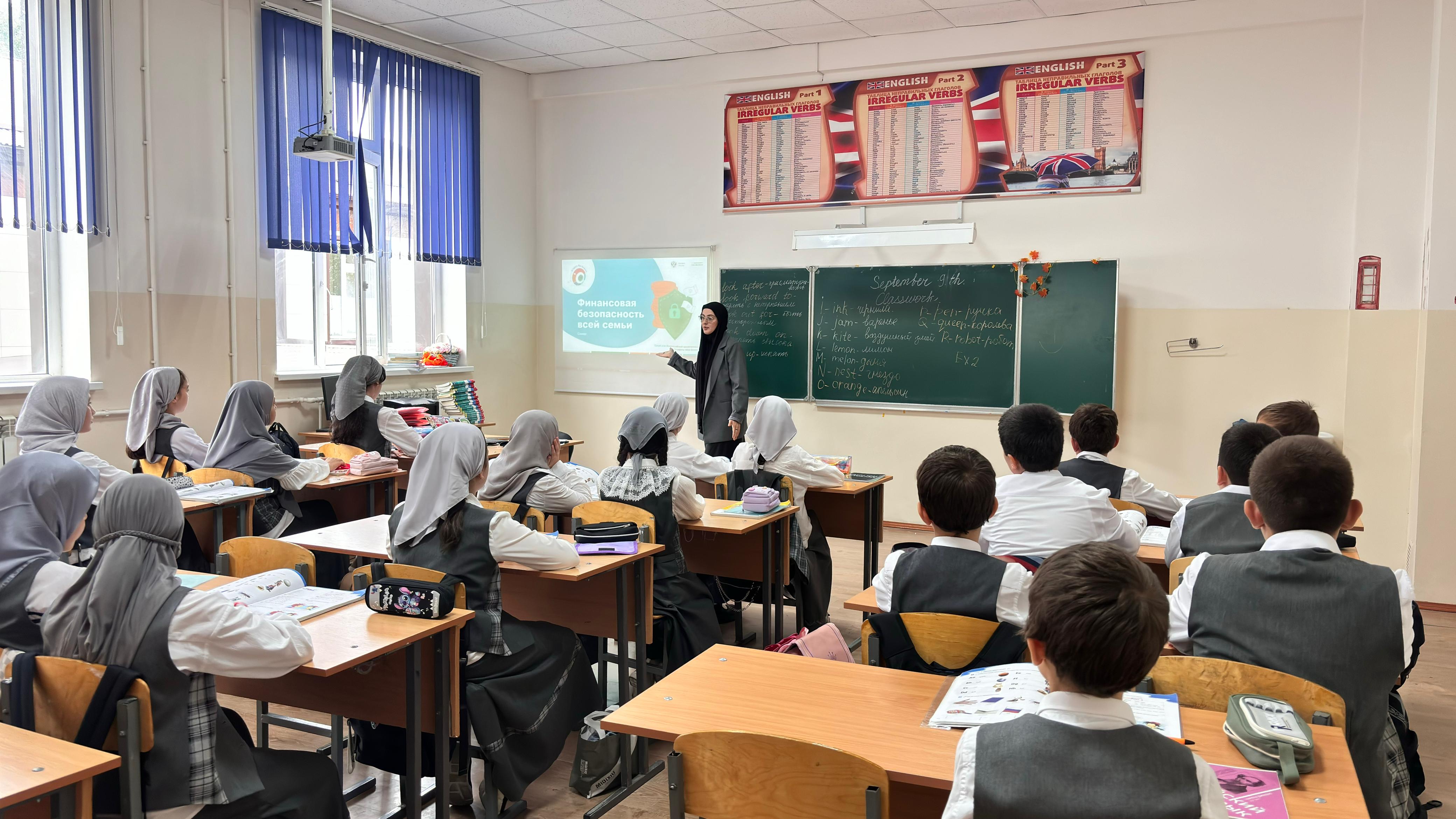 16.09.2025В МБОУ «СОШ №40» г. Грозного учитель обществознания Абдрахманова Зарема Сайдселимовна провела увлекательный и познавательный урок на тему: «Финансовая безопасность для всей семьи: защити свои деньги».